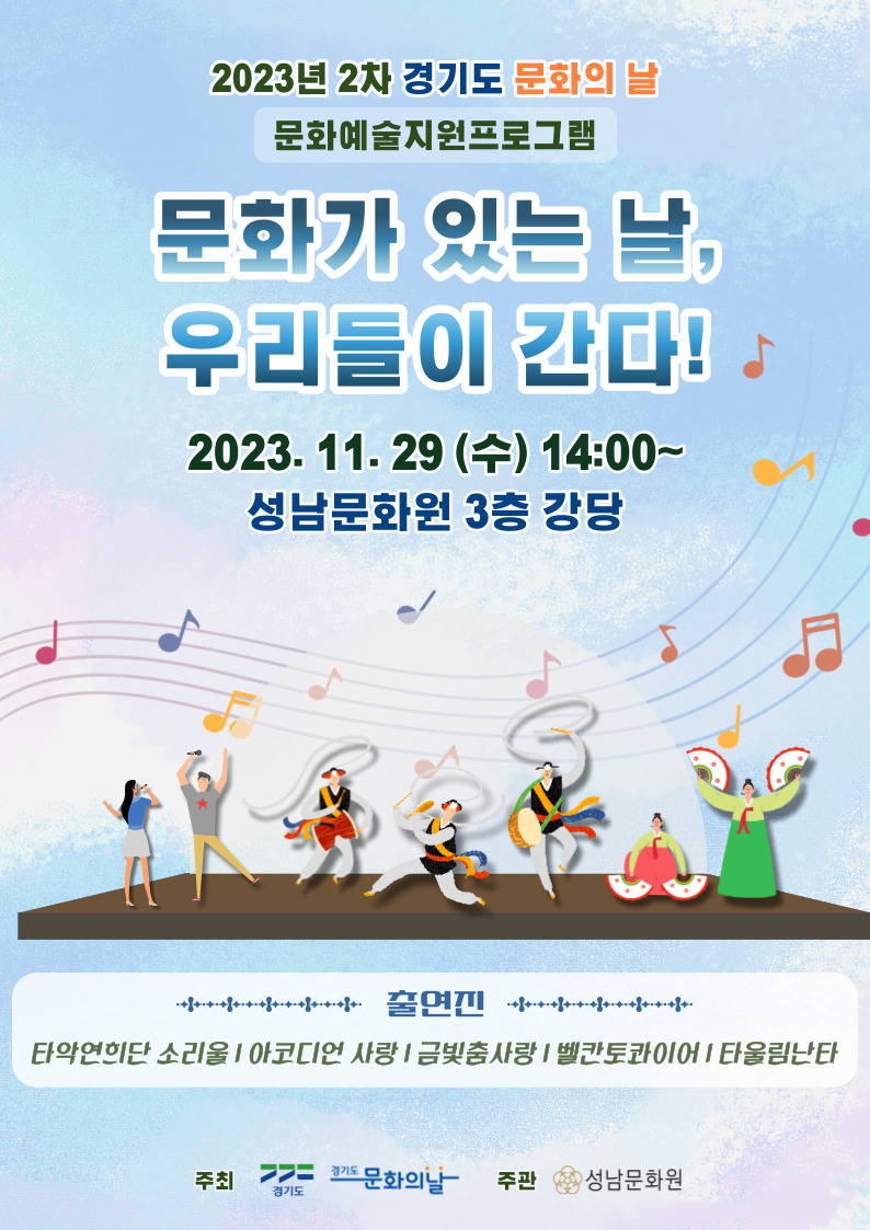 | 2023 °æ±âµµ¹®ÈÀdz¯ ¹®È¿¹¼úÁö¿øÇÁ·Î±×·¥ ¡¸¹®È°¡ Àִ³¯, ¿ì¸®µéÀÌ °£´Ù!¡¹°ø¿¬ |
