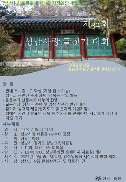 | Á¦32ȸ ¼º³²»ç¶û ±ÛÁþ±â ´ëȸ ÀÔ»óÀÚ ¸í´Ü °øÁö(ÀÚ·á½Ç) |