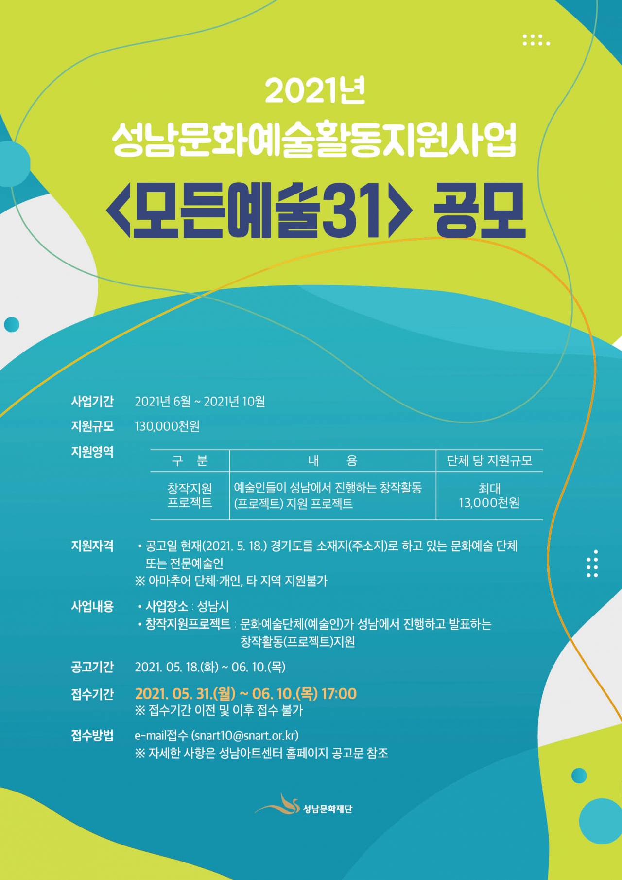 1627 ¼º³²¹®È­Àç´Ü, ¡®¸ðµç ¿¹¼ú31¡¯ °ø¸ð ¿î¿µÀÚ 2021.05.31 1572