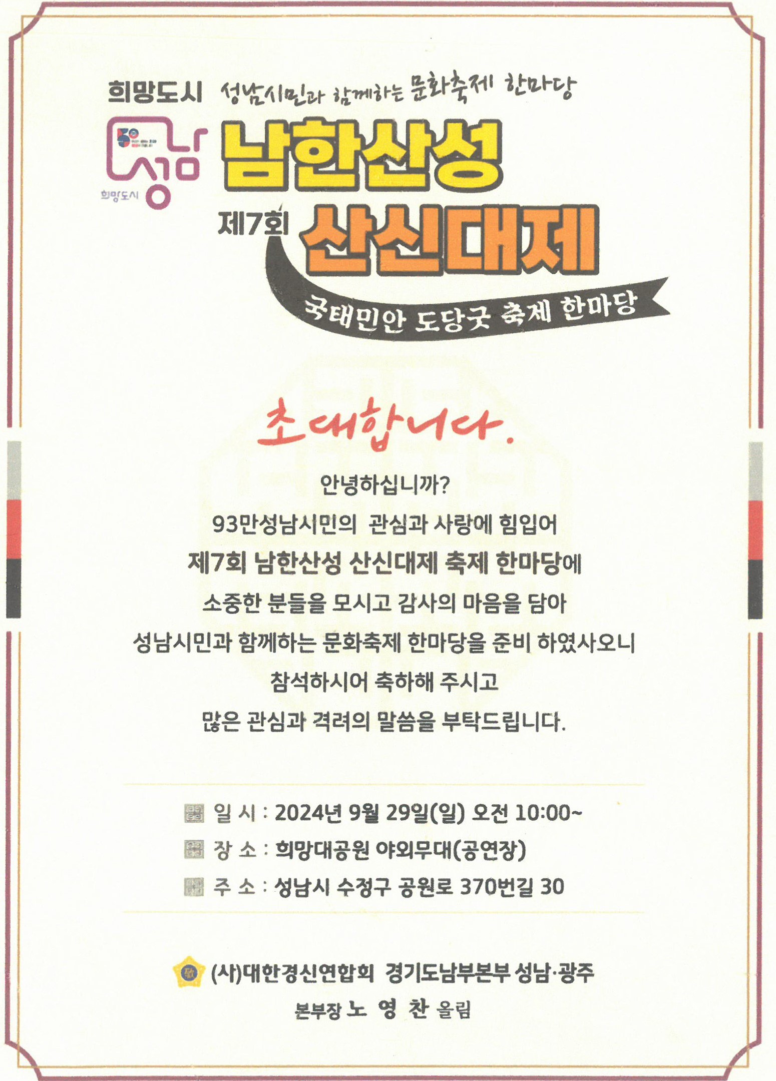 | ¼º³²½Ã ´ëÇ¥ ÃàÁ¦ <2024 ¼º³² Æä½ºÆ¼¹ú> ½Ã¹Î Âü¿© °ø¸ð È«º¸ |