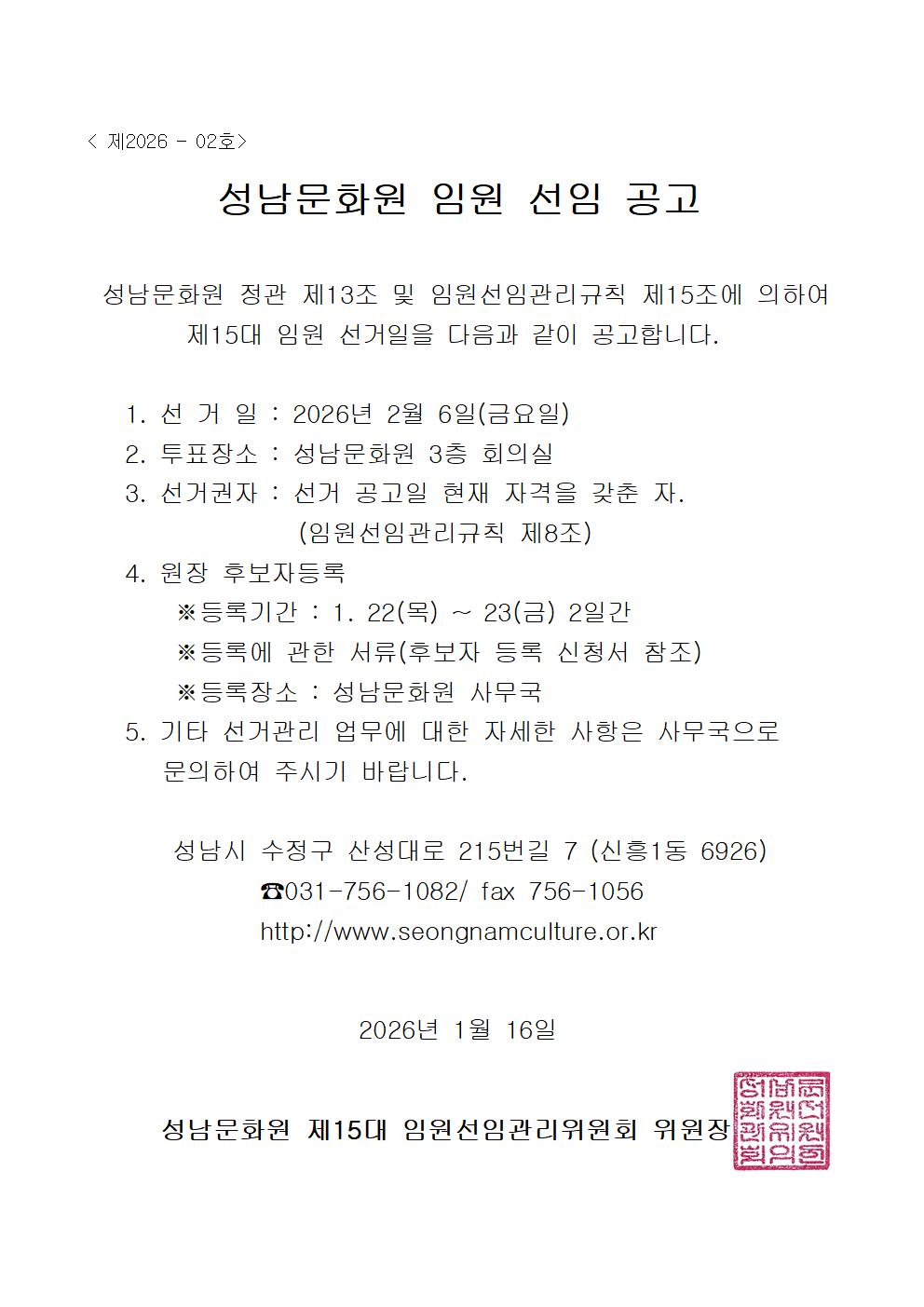 Á¦15´ë ÀÓ¿ø(¿øÀå) ¼±ÀÓ °ø°í