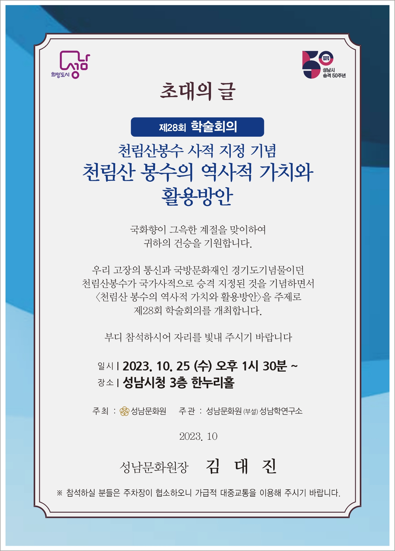 | Á¦28ȸ ÇмúȸÀÇ ¡®Ãµ¸²»ê ºÀ¼öÀÇ ¿ª»çÀû °¡Ä¡¿Í Ȱ¿ë¹æ¾È¡¯ |