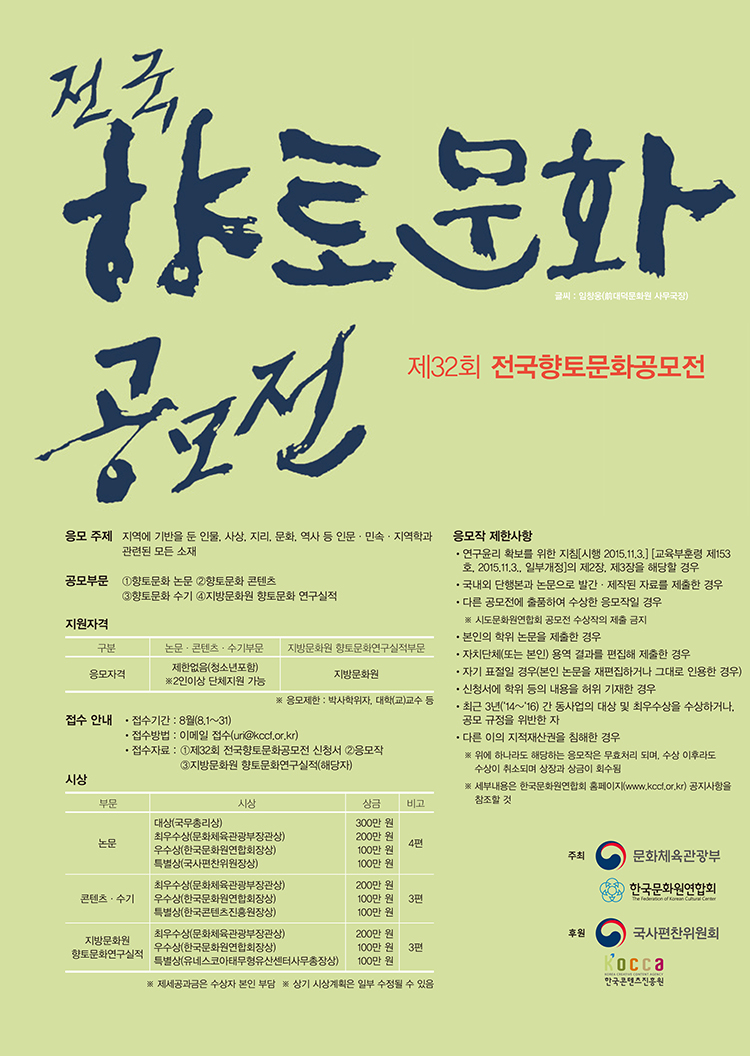 1276 Á¦32ȸ, Àü±¹ ÇâÅ乮ȭ °ø¸ðÀü¡¯°³ÃÖ ¿î¿µÀÚ 2017.08.07 2025